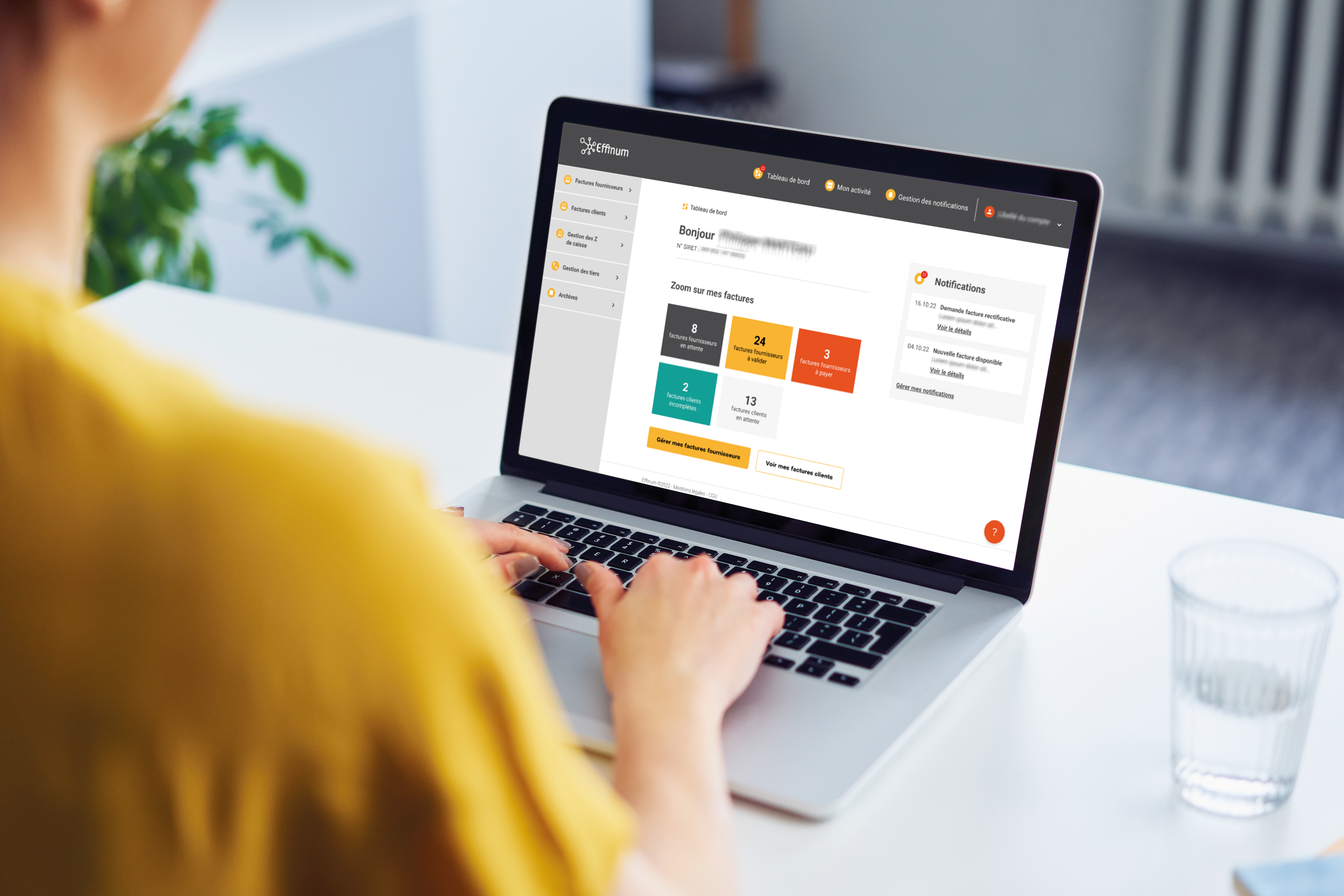 - Une centralisation de toutes vos factures sur un même espace, partagé avec votre comptable et consultable à tout moment dans votre portail clients. Dans ce cadre, le dialogue avec votre comptable est facilité.